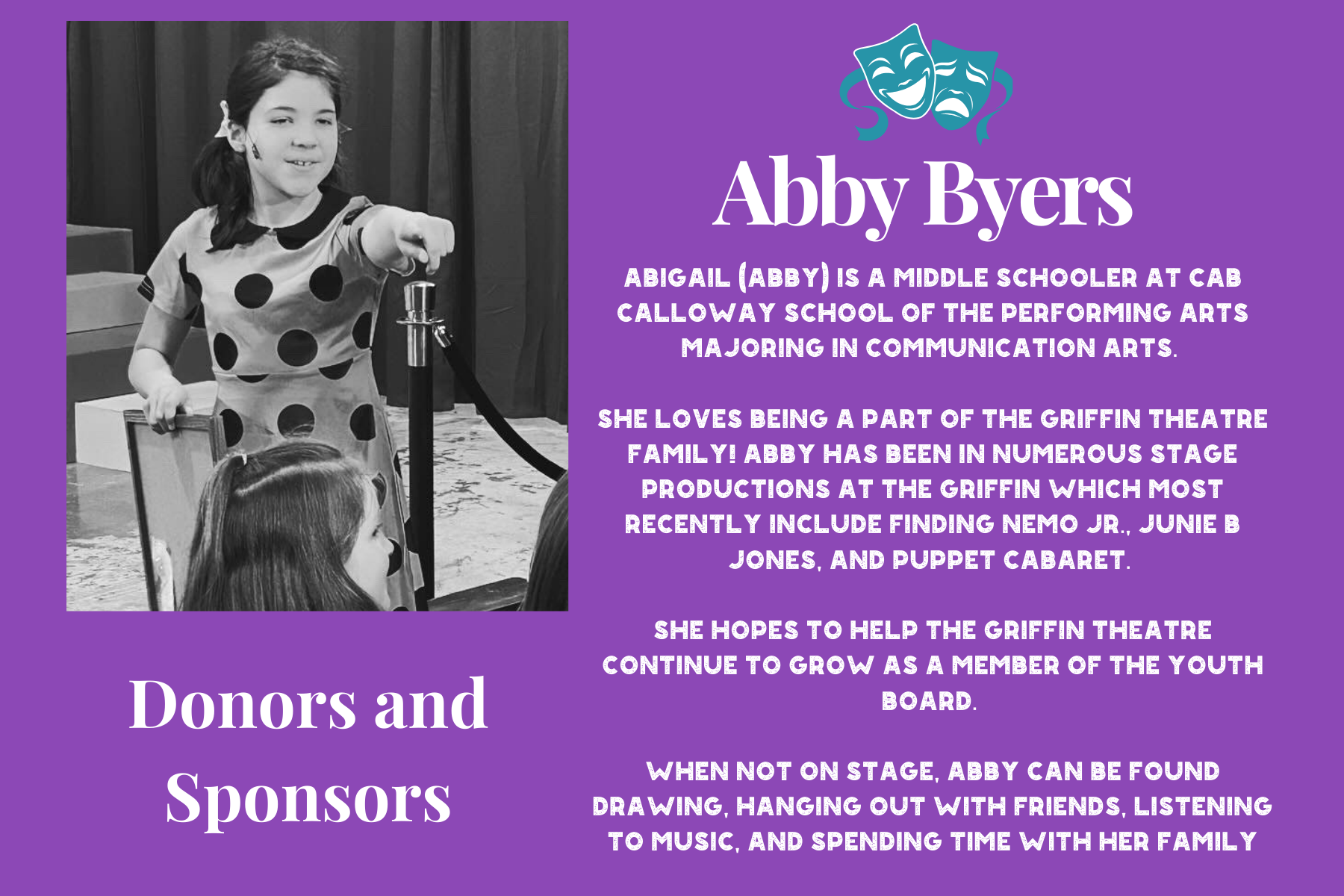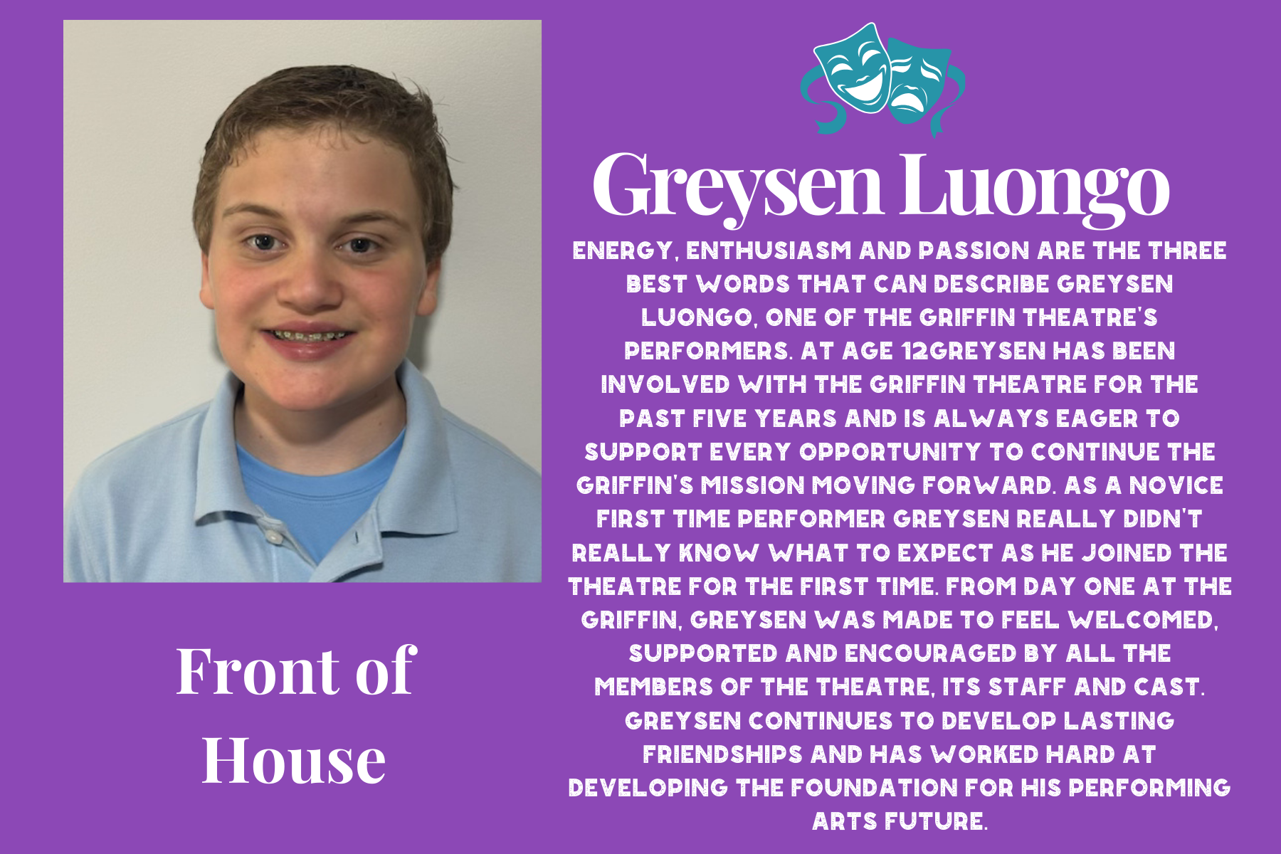 Mission: To further enhance and support the Griffin Theatre by creating an active and involved youth community. (Ages 10-20)
